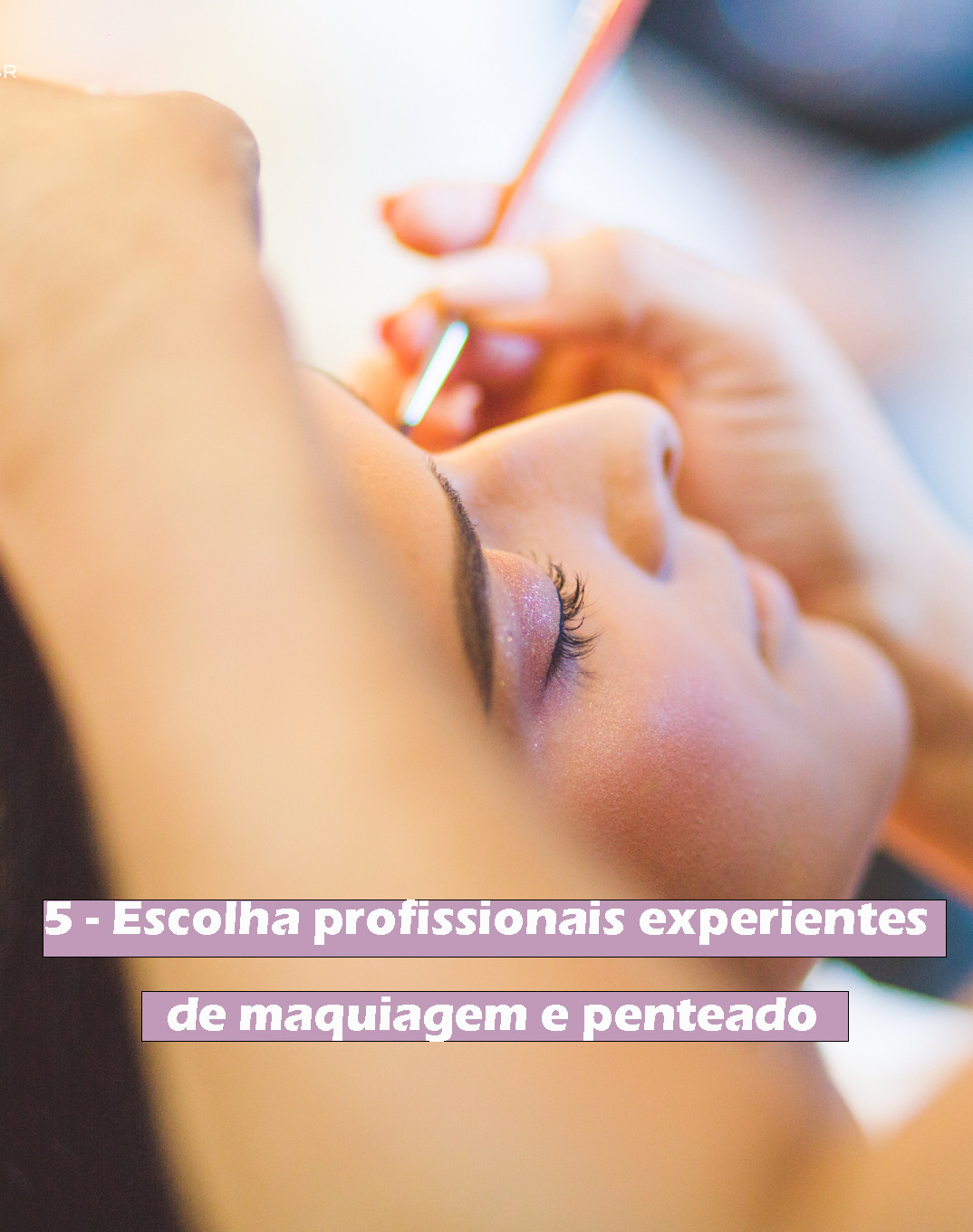 Escolha profissionais qualificados e experientes de maquiagem e penteado para evitar imprevistos, como atrasos e serviços que não duram até o final da festa de casamento.